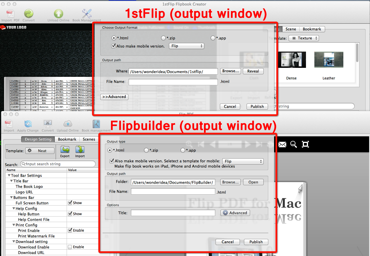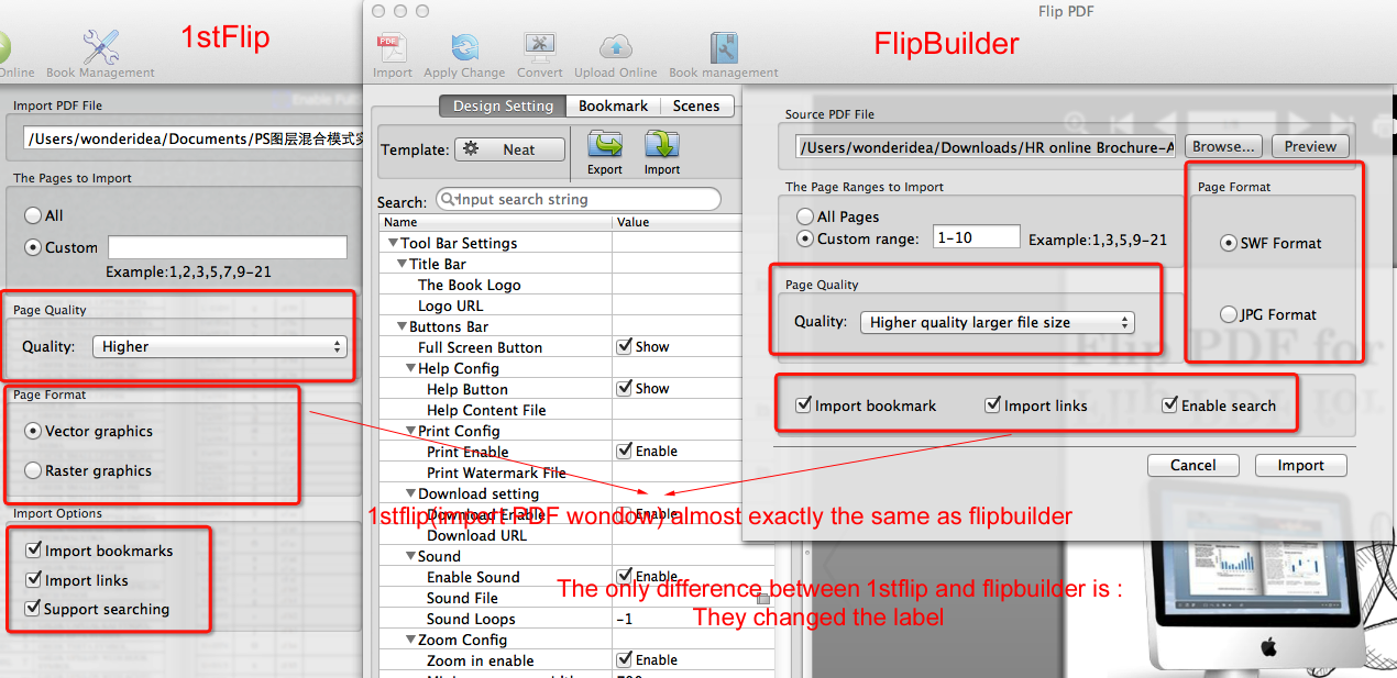 There is nothing surprising to find similarities in some design parts between two products especially in this field of software, and that was what we thought at first. However later, we found too much in common between 1stFlip Flipbook Creator and our FlipBuilder Flip PDF, which led to our suspicion of a willful infringement to our intelligence and brilliance. And after an effort of detection, our suspicion was proved to be right by a great deal of strong evidence as below (part of what we have detected) shows: