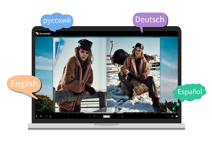 Flip PDF Professional supports multilingual interface for global users to easily design eye-catching brochures. You can have English, Chinese, Italian, Japanese, Arabic, French, German, Korean, Portuguese, Romanian, Russian and Spanish to customize software language. 12 languages provided will make you operate brochure projects in native language interface. The language will take effect after restarting software.