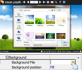 Support insert different background image or SWF file to embellish flip book easily and adjust the position of background file to look better.