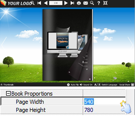 Change the values which represent a ratio for "Page Width: Page Height", and the book size will be changed depend on your Explorer Window Size.