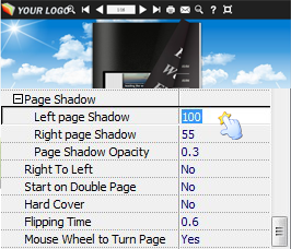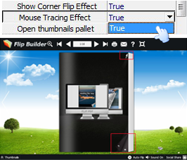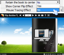 Select "Yes" or "No" to decide whether show corner flip effect and mouse tracing effect when users open flip book or not.
