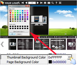 Allow to change thumbnail color and page background color with picking up a color from color based box.