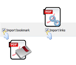 If your PDF contains bookmark or link, you can check the option "Import bookmark" or "Import link" to make bookmarks or links work in flipbook.