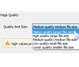 There are five kinds of page quality and size of normal and mobile version to choose. High values produce better page quality but require more disk.