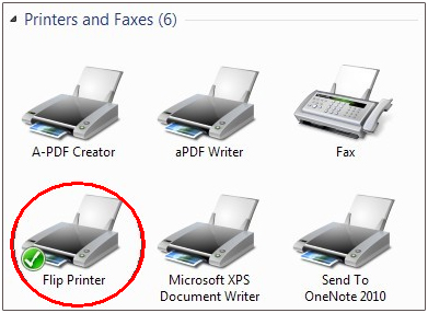 After installing Flip Printer, the tool will be listed in the interface of "Printers and Faxes":