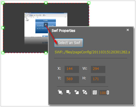 to insert SWF flash into your defined area of flipbook page: