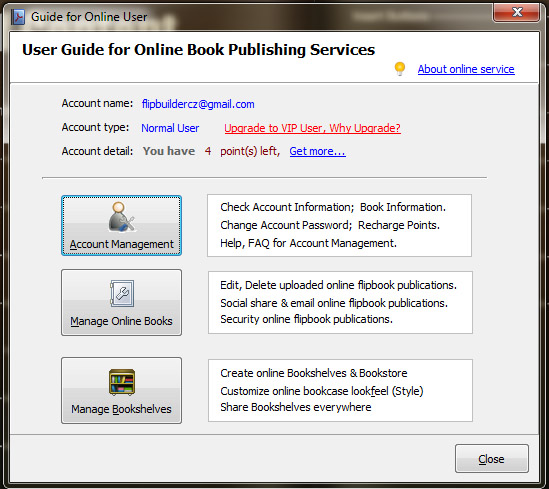 There is another charge method if you have dozens of even hundreds of books to upload a month, monthly charge $9.99 to upload 1000 books a month. You can transfer to VIP User to pay monthly in the "Account Info" panel of online manage page: http://panel.flipbuilder.com/userLoad/accountInfo.php .