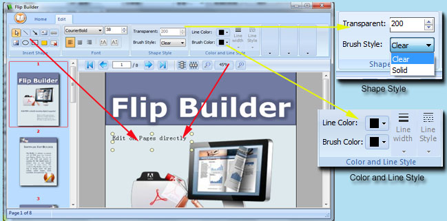 Yes, you can use Flip Builder to draw a text box on you PDF file, and to create cool page flipping book. As easy as below show:
